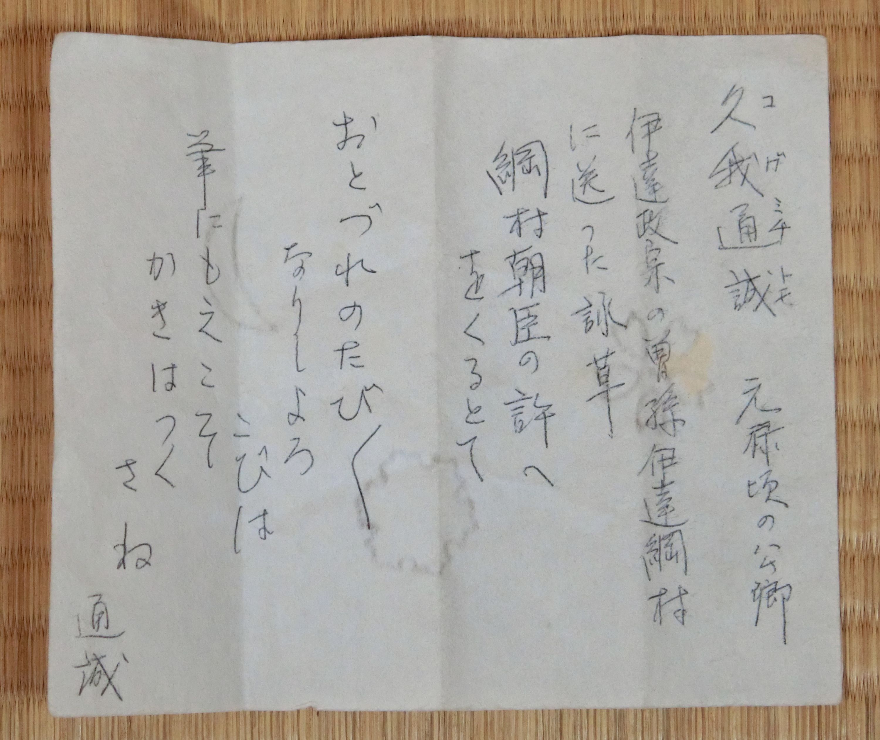 久我通誠詠草 伊達綱村宛